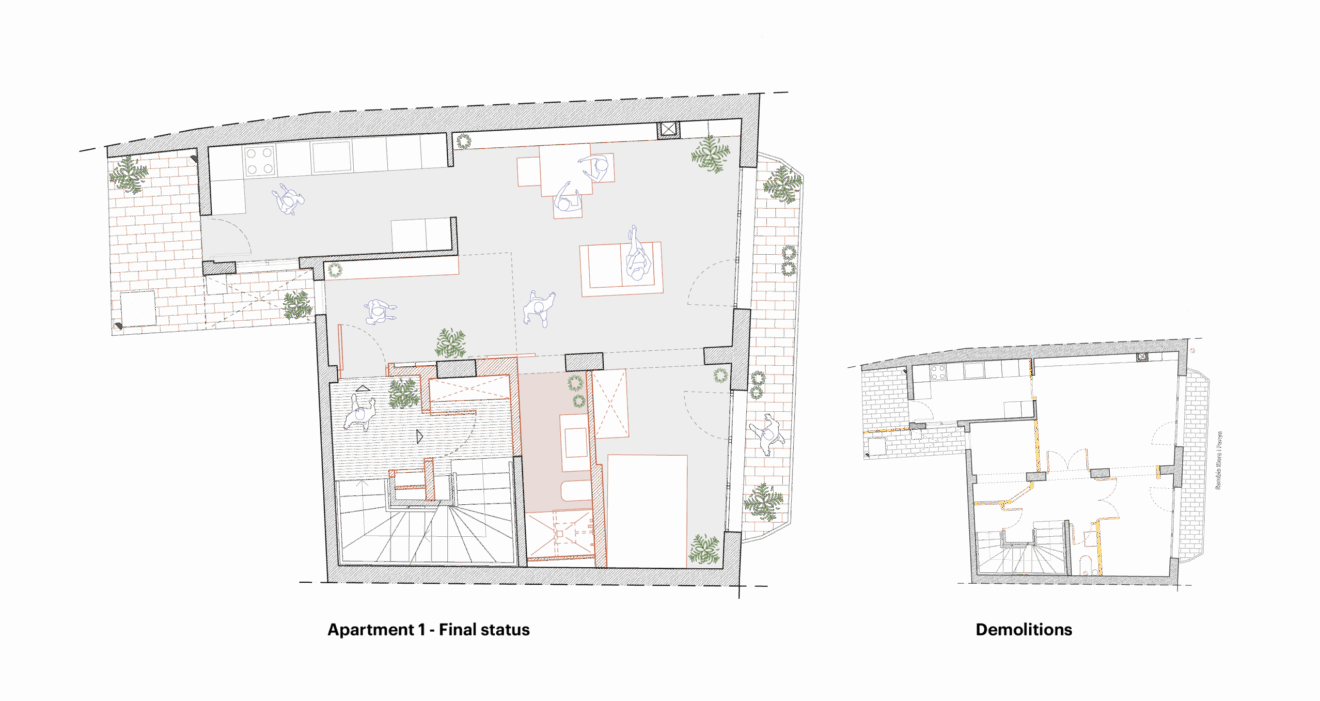 Finalment, vam aconseguir un apartament a la primera planta, de 65 m2, i un altre a la segona planta, un tríplex amb escala pròpia i terrat, de 112 m2.