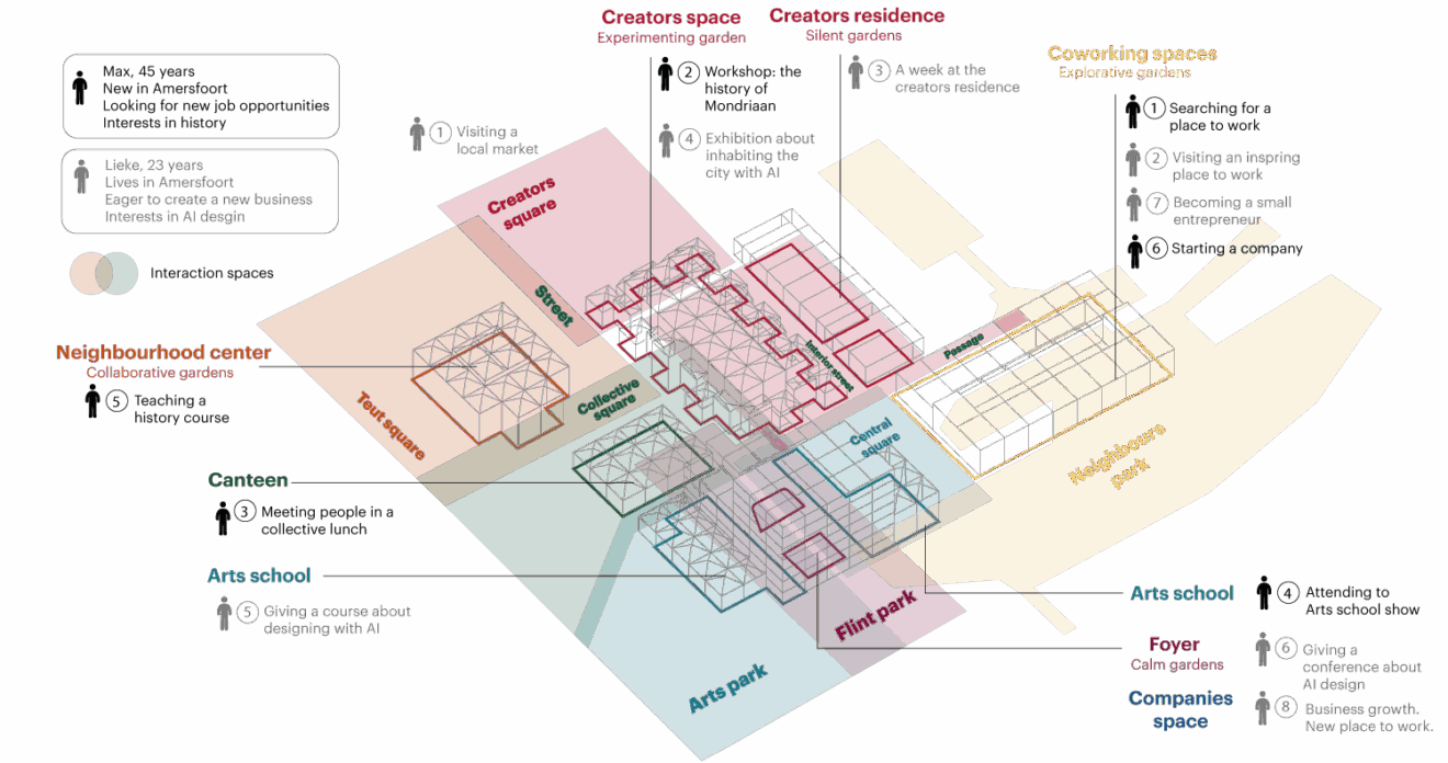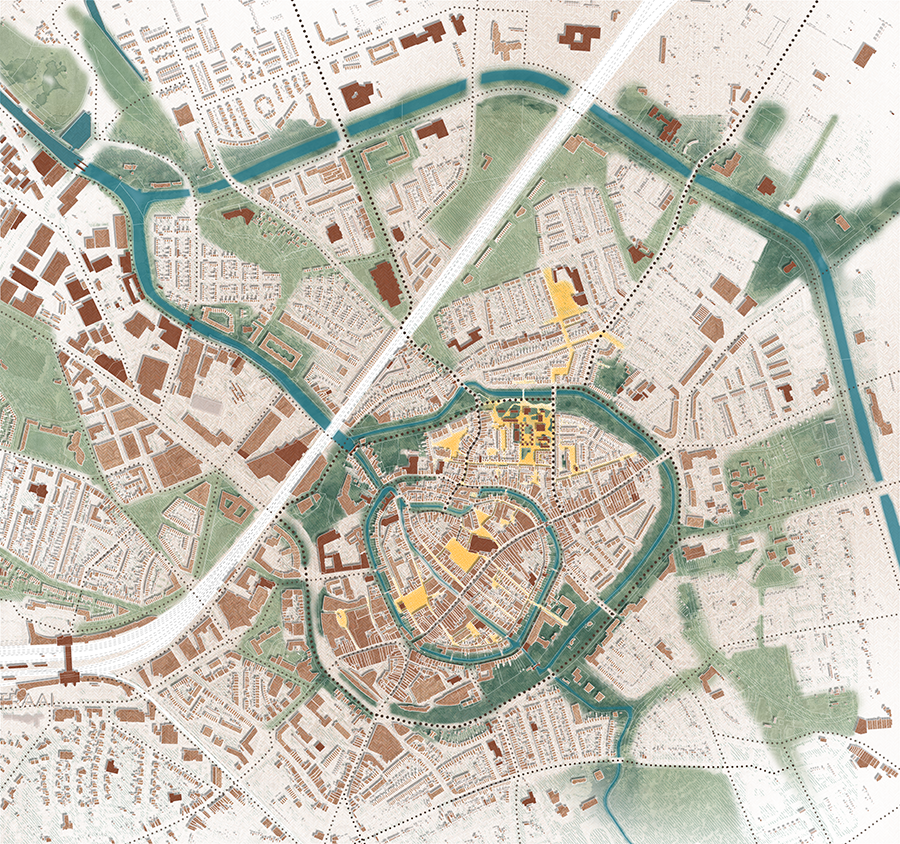 El traçat medieval d’Amersfoort, en forma d’anell, creix cap enfora des de la plaça central i la Sint Joriskerk seguint carrers radials, creant una ciutat a escala humana amb espais públics íntims com els hofjes i petites places. Tot i el fort creixement de la població i l’augment de la diversitat, la ciutat continua sent predominantment residencial i no disposa de prou equipaments culturals ni espais de treball per als molts emprenedors que hi viuen. Gràcies a la seva ubicació estratègica en un dels principals eixos radials i prop d’àrees verdes, l’antic teatre Flint té el potencial de convertir-se en un important centre cultural i social dins la xarxa urbana.