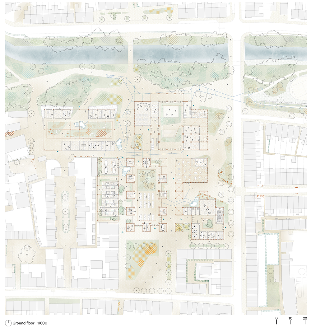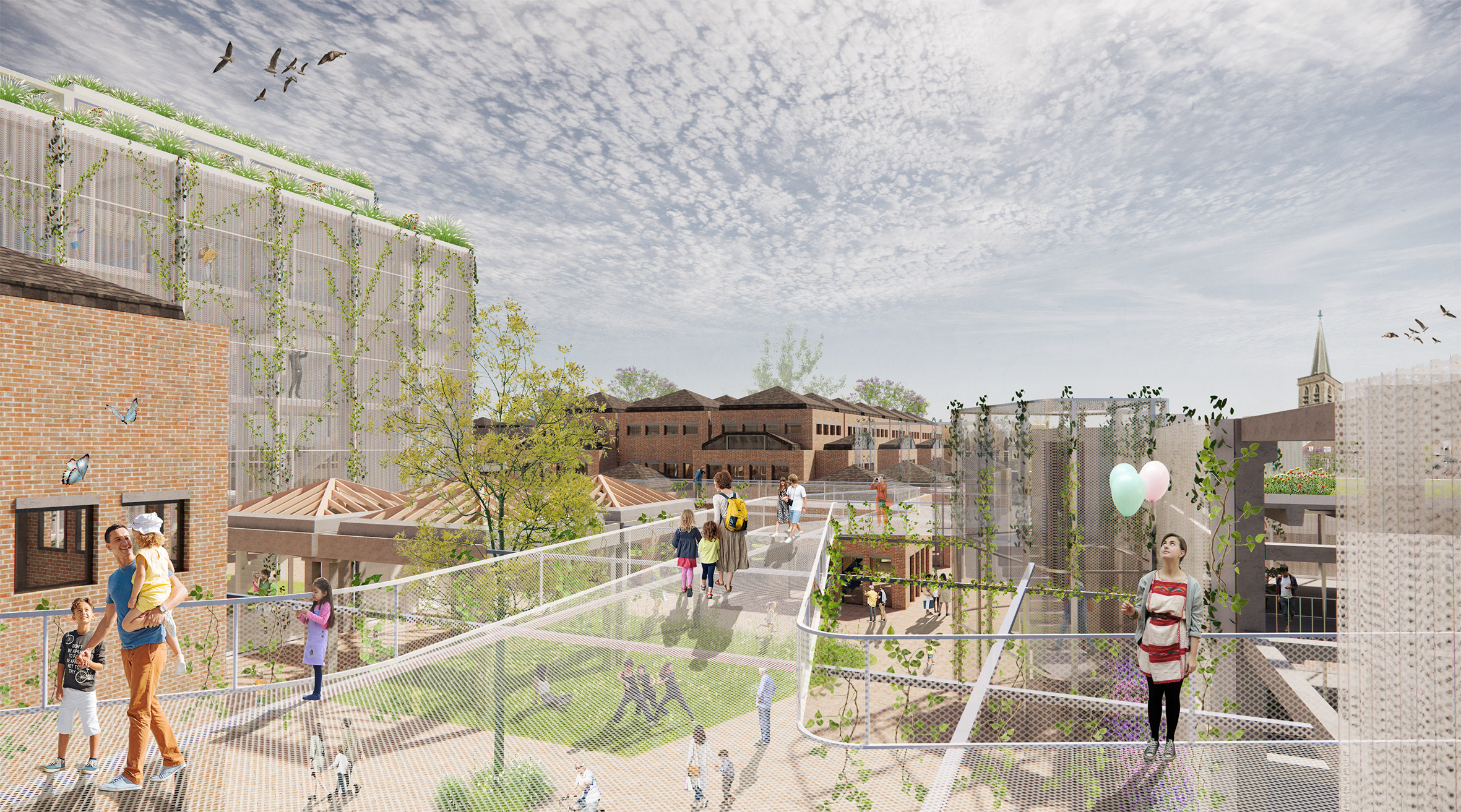 A escala urbana, el projecte crea un punt de trobada entre natura i ciutat i incorpora un passeig elevat que connecta zones clau. A escala de barri, obren les façanes perquè l’edifici torni a relacionar-se amb els carrers i espais públics del voltant. I a escala arquitectònica, es millora la transparència, la llum natural i la qualitat dels espais de trobada.